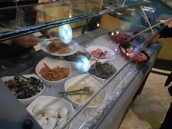 如上所見 我還真的沒注意到碗擺在哪邊 所以第一趟簡單的看過一遍 也只有先拿些熟食和生魚片等等