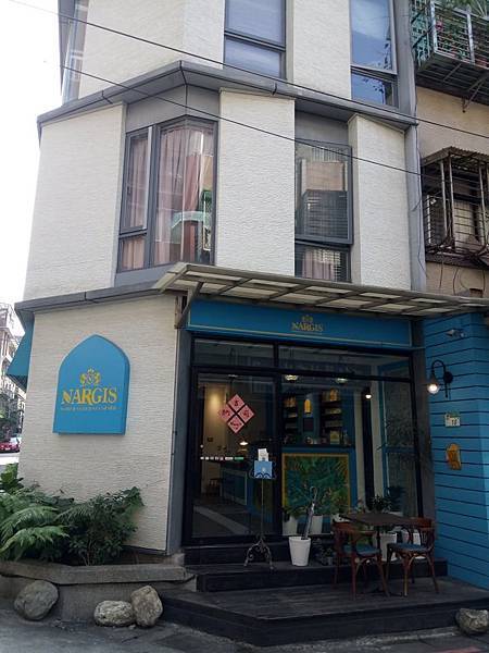 在小巷子裡,這間有著藍色異國風的建築就是了~