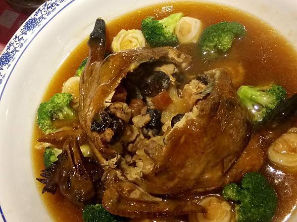 雞肉剖開後,更是別有洞天,裏頭是去骨的,包入了好多料,這道吃起來感覺和佛跳牆一樣,超級豐盛