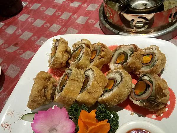油炸冰淇淋併紙包肉,紙包肉吃起來很爽口,還加了筍子和香菜,香味更加提升