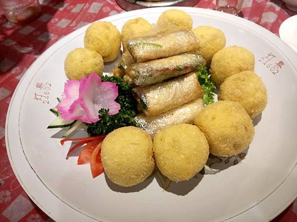 這造型感覺像是跳耀的蝦子一樣,"蝦"躍龍門?這道也太讓我驚訝了,有點像是蛋的碗糕,不過又加了荸薺