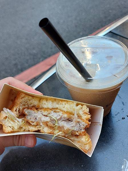 中午這樣飽餐一頓,一手香脆的土司,一手爽口的飲料