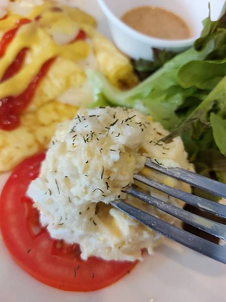 薯泥蛋沙拉也吃起來很爽口,還吃的到水煮蛋的顆粒