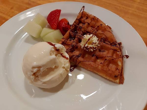 還有桌牌也可排這個~現做鬆餅,鬆軟的鬆餅配上香草冰淇淋,讓人感覺香甜又順口